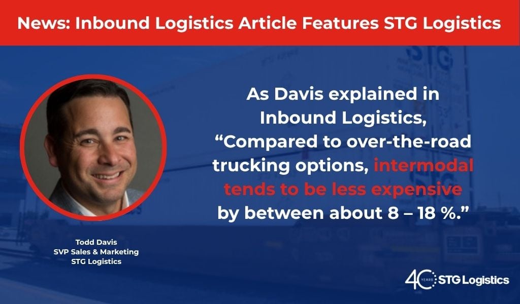 Source: Todd Davis, Senior Vice President of Sales & Marketing, STG Logistics, quoted in Inbound Logistics, “INTERMODAL: A SMART WAY TO SHIP (AND SAVE),” October 2025, p. 27 & 30. Inbound Logistics Magazine